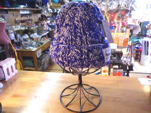 冬場の定番、ケーブルニットワッチ。厚手でボリュームのあるニット帽はシンプルでスタイルを選びません。ブランドタグがポイント。