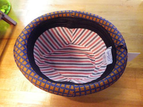 【Bello】総柄がインパクト◎細部にまでこだわったデザイン設計。裏地にはストライプ柄の生地を使用しトラッドテイスト漂う感じに仕上がっております。軽量でかぶりやすさ、フィッティングも抜群!リボン左側にはゴールドのメダルでワンポイントの装飾。