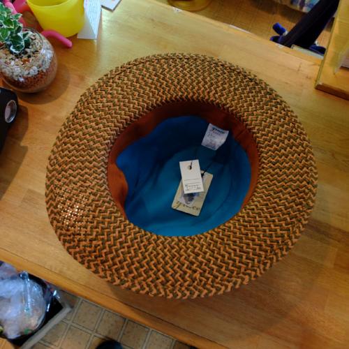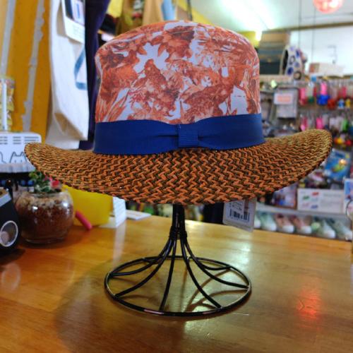【GRACE】ツバ広のヒトくせあるプリントのハット。ビッグシルエットのコーディネイトに使えます!内側に調整ベルト付き。