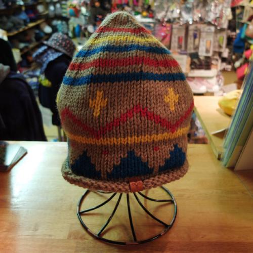 【GRACE】ハイクラウンで大きめシルエットが特徴。カラフルかつ色のバランスが取れていて目を引くデザインです。太めの毛糸でみっしり重量感のあるニット帽。内側のすべりの部分にはフリース素材を使用。