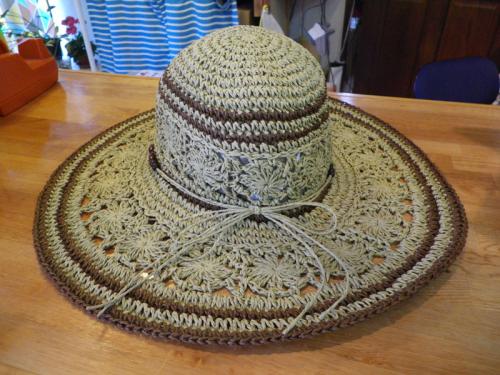 ペーパーフラワーレースハット つば広ハット ブラウン