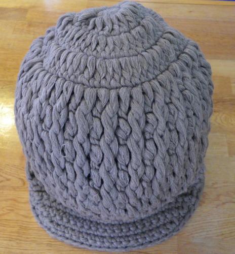 【GRACE】※「ホットレイ」の毛糸をケーブル編みしたキャップ型ニット。頭をつつみこむようなシルエットが特徴です。