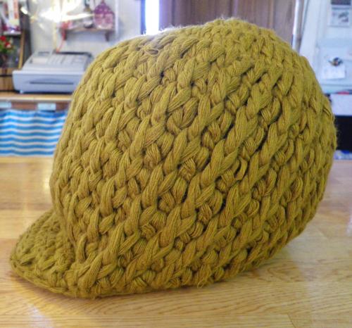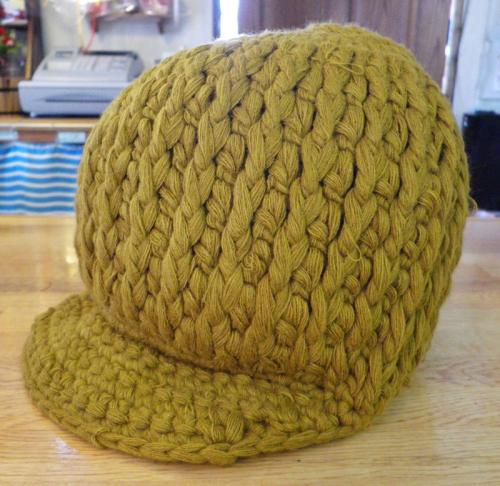 【GRACE】※「ホットレイ」の毛糸をケーブル編みしたキャップ型ニット。頭をつつみこむようなシルエットが特徴です。